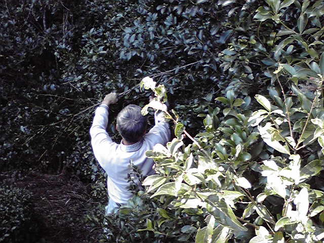 お正月にそなえる、さかきをとりました。お茶畑の横にあり、むかしからここでとっています。