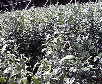 昨日の夕方から雨が降りました。品評会園のお茶は写真の状態です。6月上旬までは、このままぎっしりと伸ばしておきます。