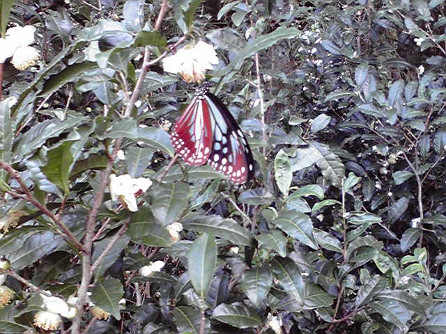 お茶の花の密を吸うアサギマダラを見つけました。めずらしかったので写真におさめました。